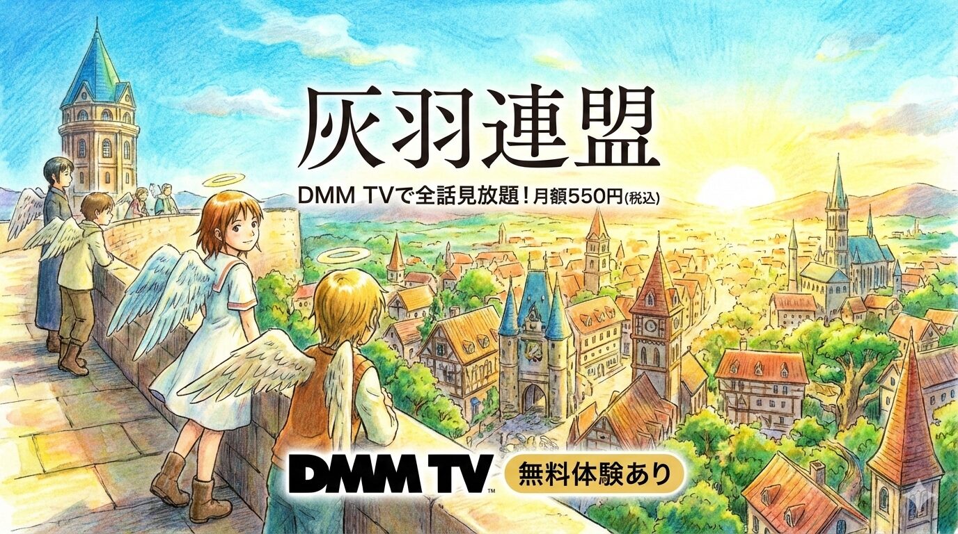 全13話・約5時間という手軽なボリュームで、DMM TVでは月額550円(税込)で全話見放題配信中です。初回14日間の無料体験を活用すれば、この珠玉の物語を気軽に体験できます。まだ観たことがない方はもちろん、かつて観て心を動かされた方の再視聴にもおすすめします。灰羽連盟の世界に、ぜひ足を踏み入れてみてください。