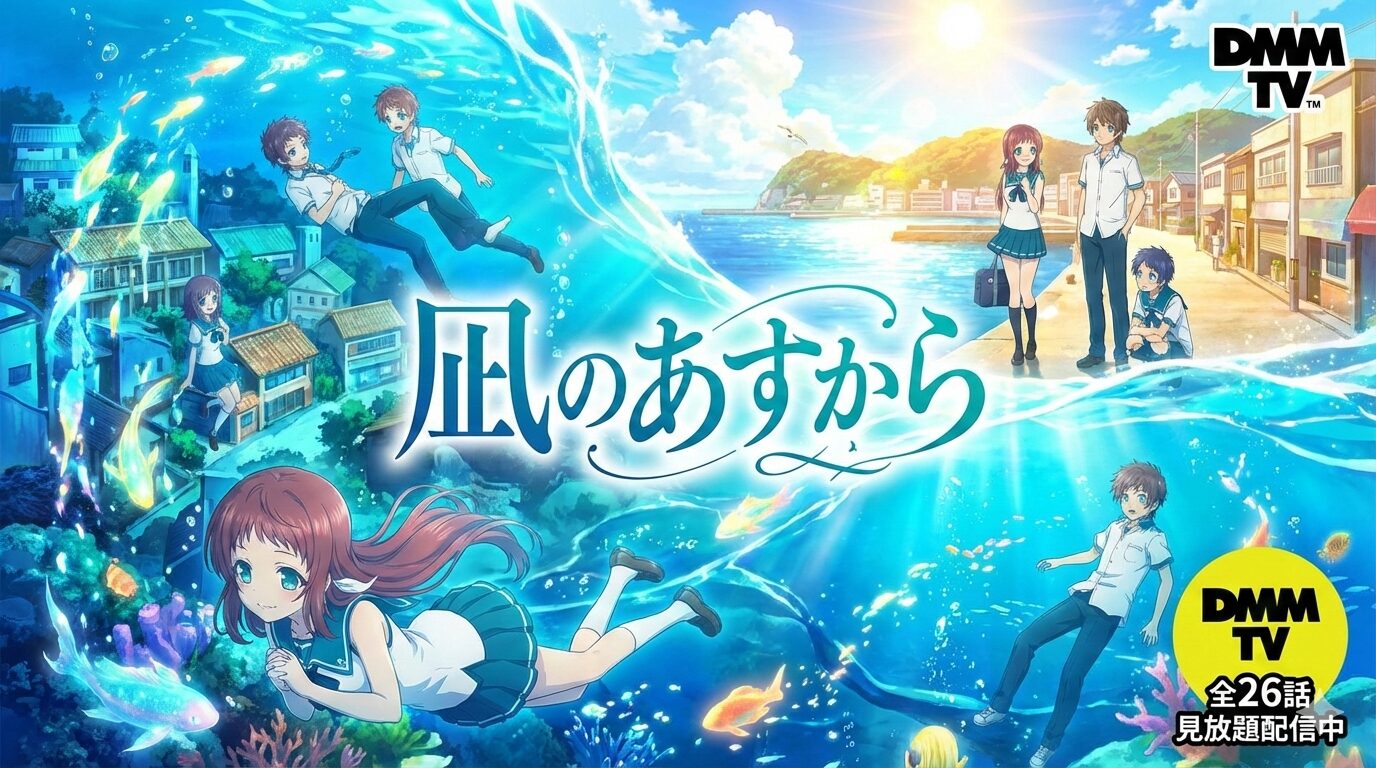 「凪のあすから」は、海と陸に暮らす少年少女たちの恋愛と成長を、圧倒的な映像美とともに描いた珠玉のオリジナルアニメです。7人の片想いが複雑に絡み合う恋愛群像劇は見応え十分で、前半の丁寧な伏線が後半で見事に回収されていく構成は多くの視聴者を感動させてきました。あにこれ90.4点という高評価が示すとおり、放送から12年以上が経った今もなお、聖地・熊野市とのコラボ企画が毎年開催されるなど新たなファンを獲得し続けている本作は、まさに時代を超えて愛される名作です。DMM TVなら月額550円(税込)で全26話が見放題、初回14日間の無料体験を活用すれば追加料金なしで最終話まで一気見できます。まだ「凪のあすから」を見たことがない方も、もう一度見返したいという方も、この機会にぜひ美しい海の世界に飛び込んでみてください。