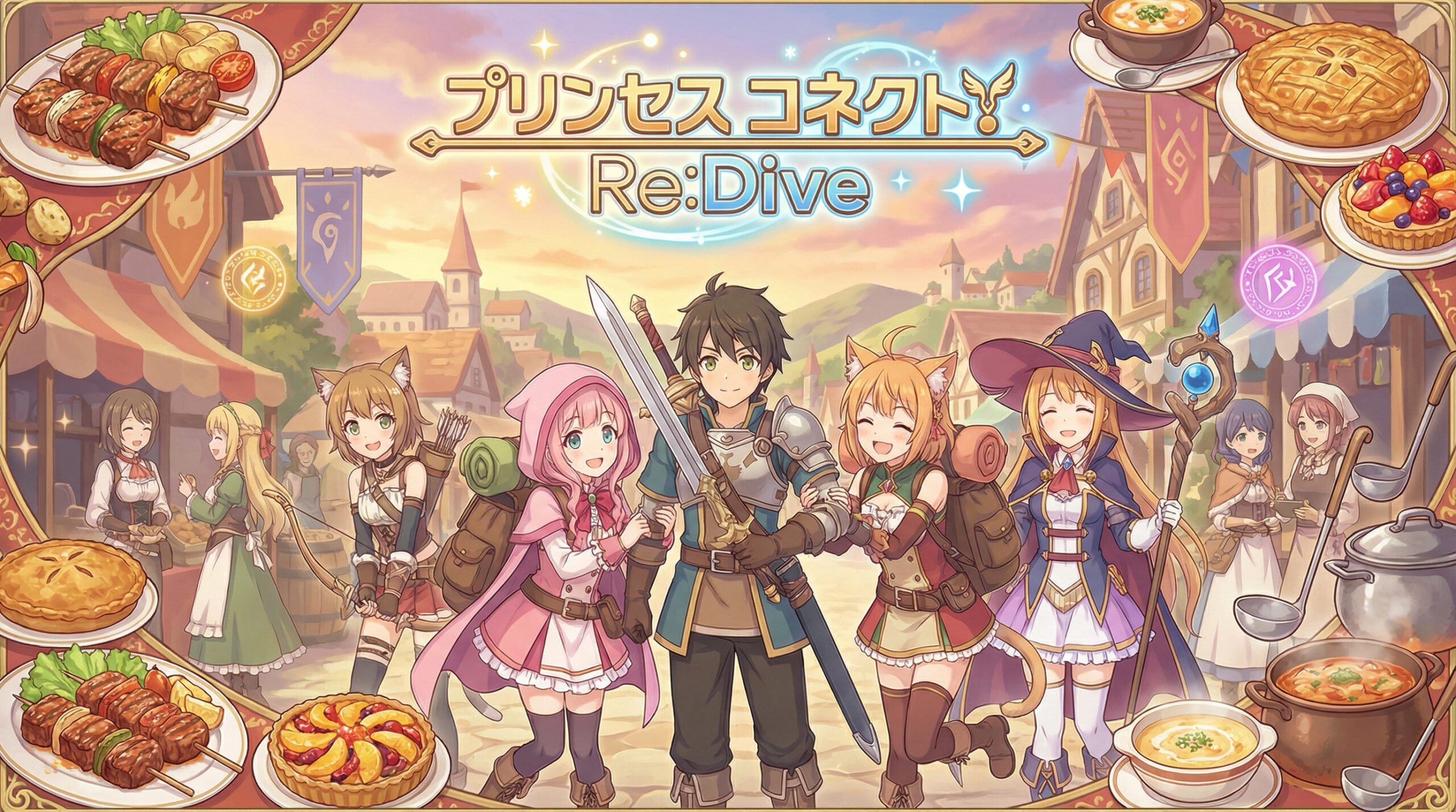 旅路の途中、ユウキとコッコロは大食いで天真爛漫な少女ペコリーヌと出会います。彼女の豪快な食べっぷりと底抜けに明るい性格にユウキたちはすぐに打ち解けますが、ペコリーヌには大きな秘密がありました。彼女の正体は「ランドソル王国の王女ユースティアナ」であり、覇瞳皇帝と呼ばれる存在の策略により王位と名前を奪われ、正体を隠して放浪の旅を続けていたのです。さらに、覇瞳皇帝の命を受けた魔族のスパイであるツンデレ猫耳少女キャルも合流し、4人はギルド「美食殿」を結成します。美食殿の活動理念は「美味しいものを食べること」というゆるいものですが、旅を続けるうちにアストルムに渦巻く陰謀の影が少しずつ忍び寄ってきます。